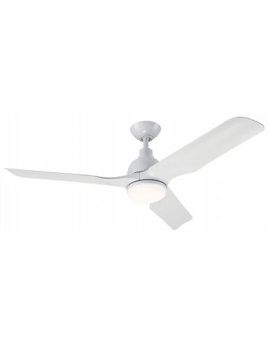 AVIATEUR Loftventilator udført i et moderne design, fremstillet i mat hvidlakeret stål og med vinger i ABS. Loftventilatoren kan monteres på vandrette og skrå lofter (i kip). Ventilatoren måler 132 cm i diameter og 31,2 – 38,2 cm i højde/fremspring. Den k