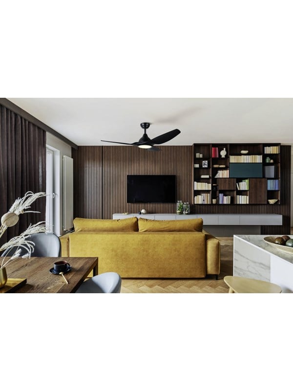 EGLO TUNITAS loftventilator i sort med lys. Dæmpbar. Med fjernbetjening og timer (2, 4, 8 timer). Højde 38 cm, diameter 132 cm. LED, 16 watt, 1800 lumen, 3000, 4000 og 5000 kelvin, tunable white. DC, 30 watt. 6 hastigheder. 51 db(A). Sommer/vinter mode. V
