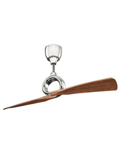 LINK Loftventilator udført i et moderne design, fremstillet i poleret nikkelfarvet stål og med vinger i ABS i brunt trælook. Loftventilatoren kan monteres på vandrette lofter. Ventilatoren måler 137 cm i diameter og 62 cm i højde/fremspring. Den kommer me