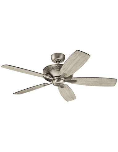 MONARCH Loftventilator udført i et design, fremstillet i antik tingrå lakeret stål og med vinger i antik tingrå træ. Loftventilatoren kan monteres på vandrette og skrå lofter (i kip). Ventilatoren måler 132 cm i diameter og 34 cm i højde/fremspring. Den k