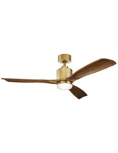 RIDLEY Loftventilator udført i et moderne design, fremstillet i messinglakeret stål og med vinger i brunlakeret kirsebærtræ. Loftventilatoren kan monteres på vandrette og skrå lofter (i kip). Ventilatoren måler 132 cm i diameter og 34 – 41 cm i højde/frem