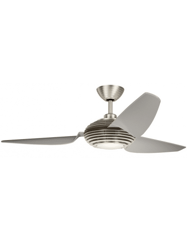 VOYA Loftventilator udført i et moderne design, fremstillet i børstet stål og med vinger i polycarbonat i samme farve/design. Loftventilatoren kan monteres på vandrette og skrå lofter (i kip). Ventilatoren måler 152 cm i diameter og 30 – 38 cm i højde/fre